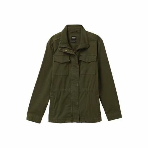 The prAna Sancho Jacket for women is made from an organic cotton blend and is garment dyed. Design details of this unlined standard fit jacket include a metal zipper closure at front with snap closure wind flap, an internal waist draw cord, snap closure chest pockets, and hand pockets.