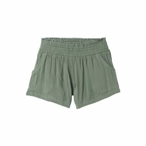 TENCEL Modal lightweight crinkle woven • Pull-on short w/wide elasticized waistband • Front and back patch pockets • Asymmetrical hem • Size: Small / Inseam: 4″ (10.61cm) • Relaxed Fit