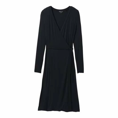 The prAna Foundation LS Wrap Dress for women is made from a lightweight stretch TENCEL Modal Jersey fabric. Design features of this fitted, long sleeve faux wrap dress include a side tie, back bodice and lined skirt, on seam pockets, and slits at side seam hemline.