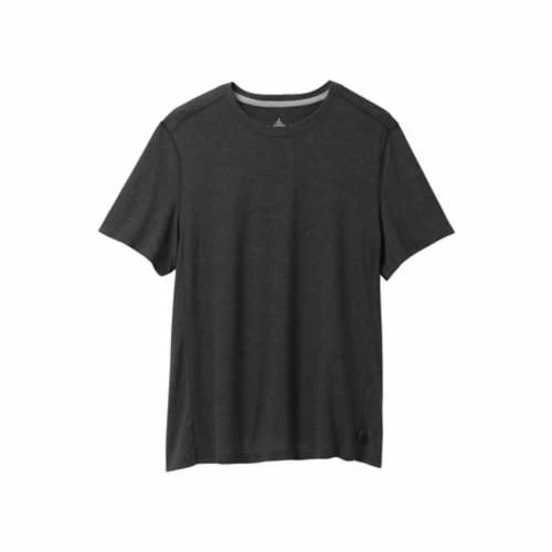 Recycled polyester blend melange micro stripe fabric • 4-way stretch jersey knit • Moisture wicking • Two-tone neck tape binding detail • Logo flag label at wearer’s left side seam • Standard Fit
