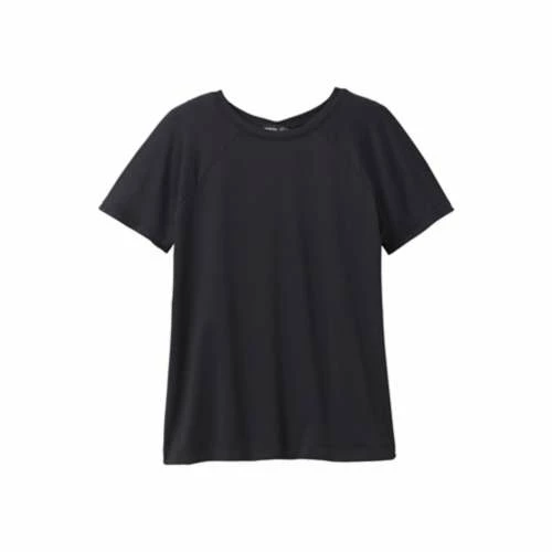 The prAna Alpenglow Short Sleeve for women is a bluesign® approved product made from a recycled polyester blend jersey fabric. Design details for this standard fit scoop neck raglan short sleeve include moisture wicking properties, self binding at neck with back crossover detail, a tuck pleat at center back, forward side seams with split at hem, and a turnback hem.