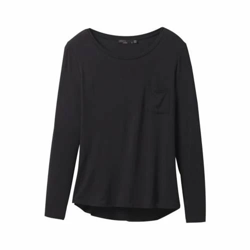 The prAna Foundation Long Sleeve Crew for women is made with a lightweight stretch modal jersey. Design features include a boat neck, long sleeve pocket tee silhouette, and a standard fit.