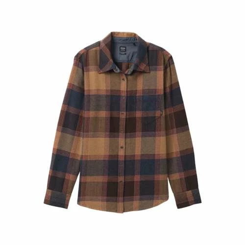 The prAna Golden Canyon Flannel for women is made from an organic cotton woven flannel fabric. Design features of this relaxed fit shirt include a traditional buttondown silhouette, a classic collar, buttondown placket, snap closure, and cuffs, a single chest pocket, self loop at center back yoke, and a hidden internal pocket at wearer’s left side seam.