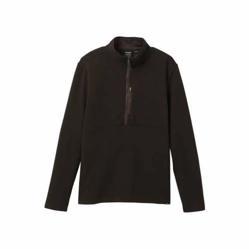 The prAna Route Tracker 1/4 Zip for men is made from a recycled wool double face rib knit fabric with brushed back. Design details of this standard fit top include a Vislon zipper at center front with silicone tipped cord zipper pull tabs and draft flap, a reverse coil zip pocket at chest, and jersey lining at collar and pocket bag.