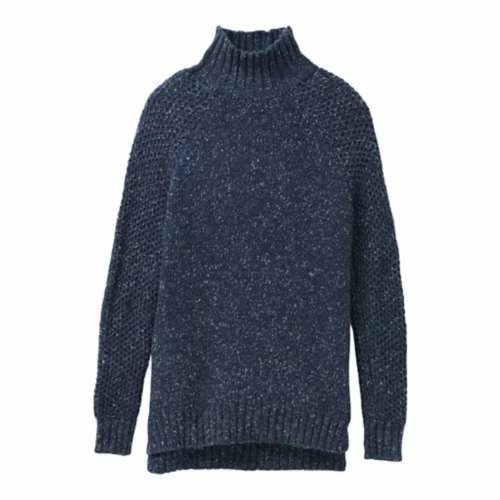 The prAna Ibid Sweater Tunic for women is made from a recycled content sweater knit yarn fabric. Design features of this standard fit sweater knit turtleneck include ragland sleeves with novelty knit stitching, a rib knit turtleneck, sleeve cuffs and bodice hem, and side seam slits with high/low hemline.