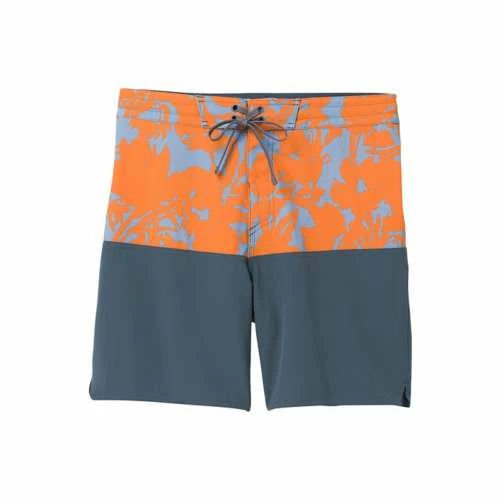 The prAna On The Rocks Boardshort is a men’s short with a 7.5″ inseam. Made from a recycled polyester and Spandex blend, this standard fit board short delivers a high performance 4-way stretch. Design features include colorblock detailing, a fixed waistband with front placket detail, a faux fly with gusset, and a drawcord with a tie closure. There is also a vent at the outside hem.