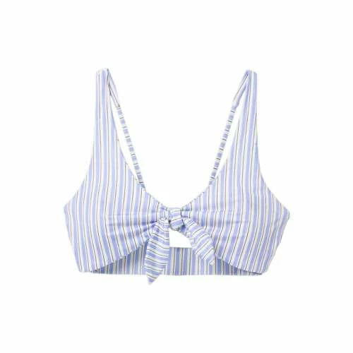 The prAna Vivienne Top for women is a swim style made with an ECONYL® regenerated nylon blend and built by a Fair Trade Certified Factory. Design features include a front tie detail, adjustable shoulder straps, removable soft cups, full lining, moderate bust coverage, and moderate support.
