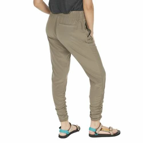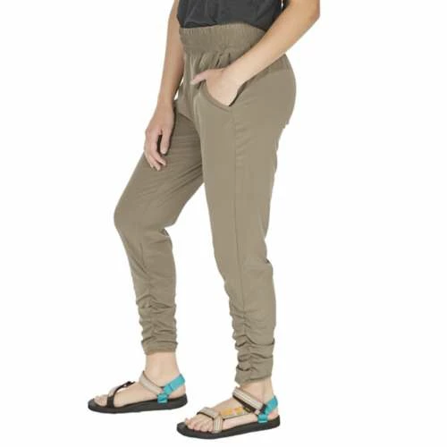The prAna Railay Pant for women features bluesign® approved materials and is made from a recycled polyester blend of stretch performance woven fabric. Design features for this sleeveless style include UPF 50+, moisture-wicking properties, an encased elastic waistband with gathered seaming detail, an interior drawcord for waistband adjustability, front hand pockets, a hidden zip pocket at the wearer’s left side seam, a back welt pocket at the wearer’s right, bottom leg ruching, and a relaxed fit.